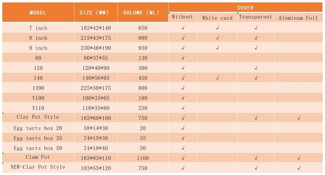 ایمن مایکروویو: | هیچ | گزینه های اندازه: | 10 ، 20 و 50 قطعه ظروف |